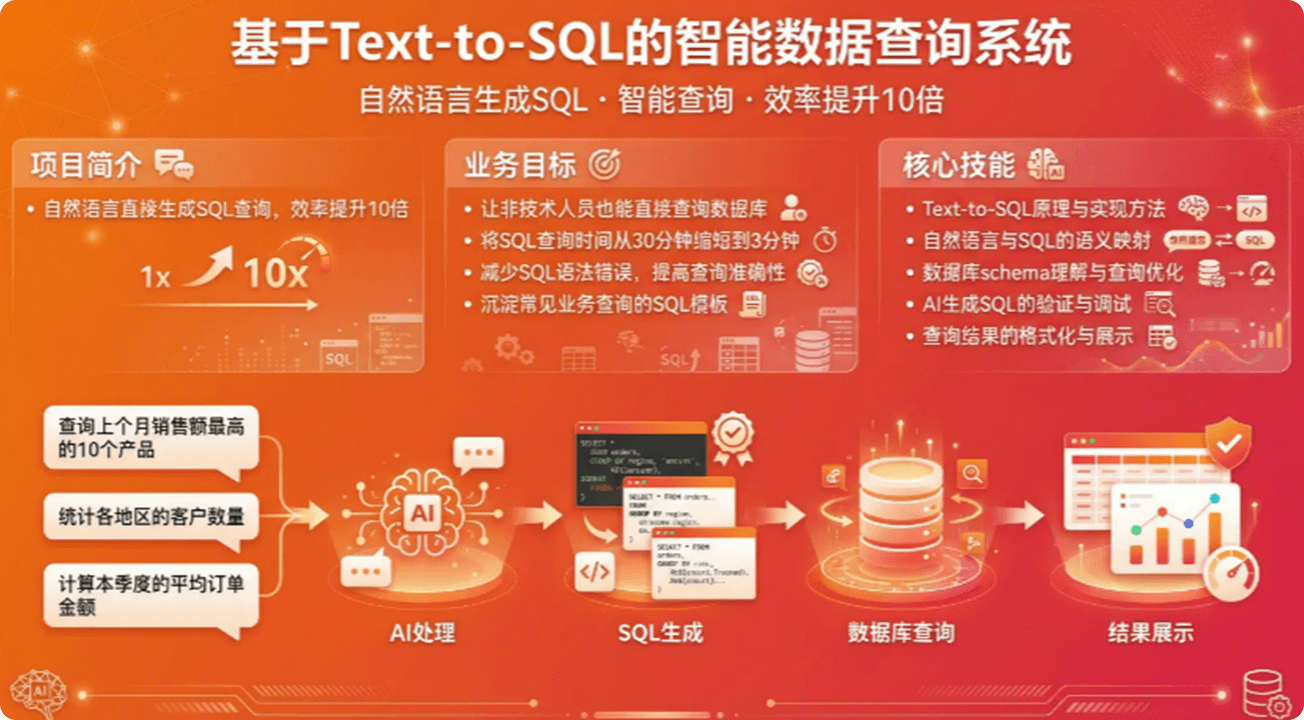| Text-to-SQL智能查询 | 8 | 自然语言转SQL、AI辅助查询 | 效率提升10倍 |