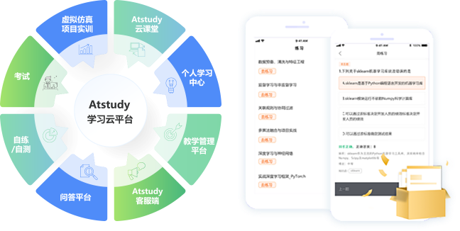 整个课程由Atstudy学习实训云平台+项目实战手册+视频讲解+作业+练习+测试组成,小白学员本地无需任何复杂的学习环境配置,开箱即用,轻松上手